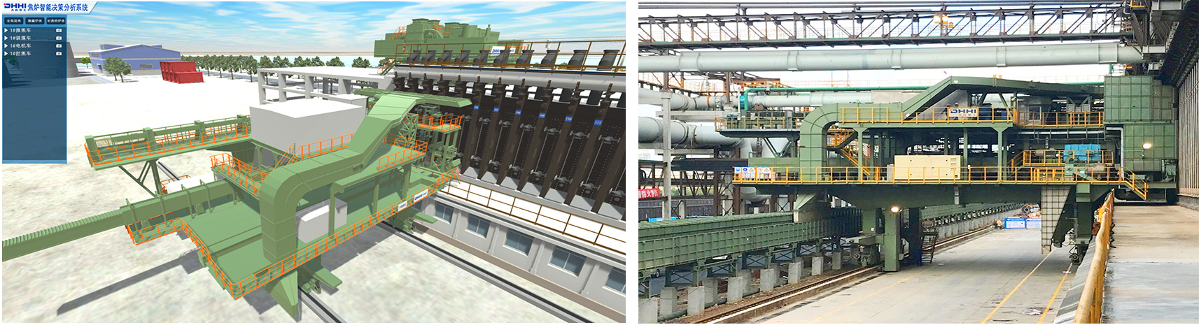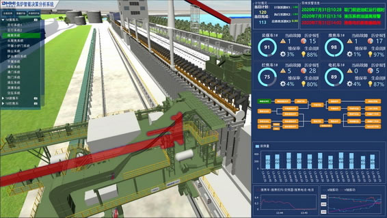 焦炉机械数字化孪生基于数字化三维,突破传统工业平面SCADA局限性,创造性地以数字化三维的方式真实、精确的动态监控焦炉机械设备实时运行状态、故障、实时数据曲线,实现数字化三维模型与真实设备生产过程保持一致,达到数字化双胞胎的程度,向焦炉技术人员实时反映炼焦生产全貌,实现焦炉机械设备的多维度管控,为企业管理人员的决策操作提供便利,对于提高焦炉生产的自动化水平,保证焦炉机械的无人操作具有重大意义,相关技术国内先进,大幅推进焦炉机械基础自动化向高度数字化、智能化的转变。